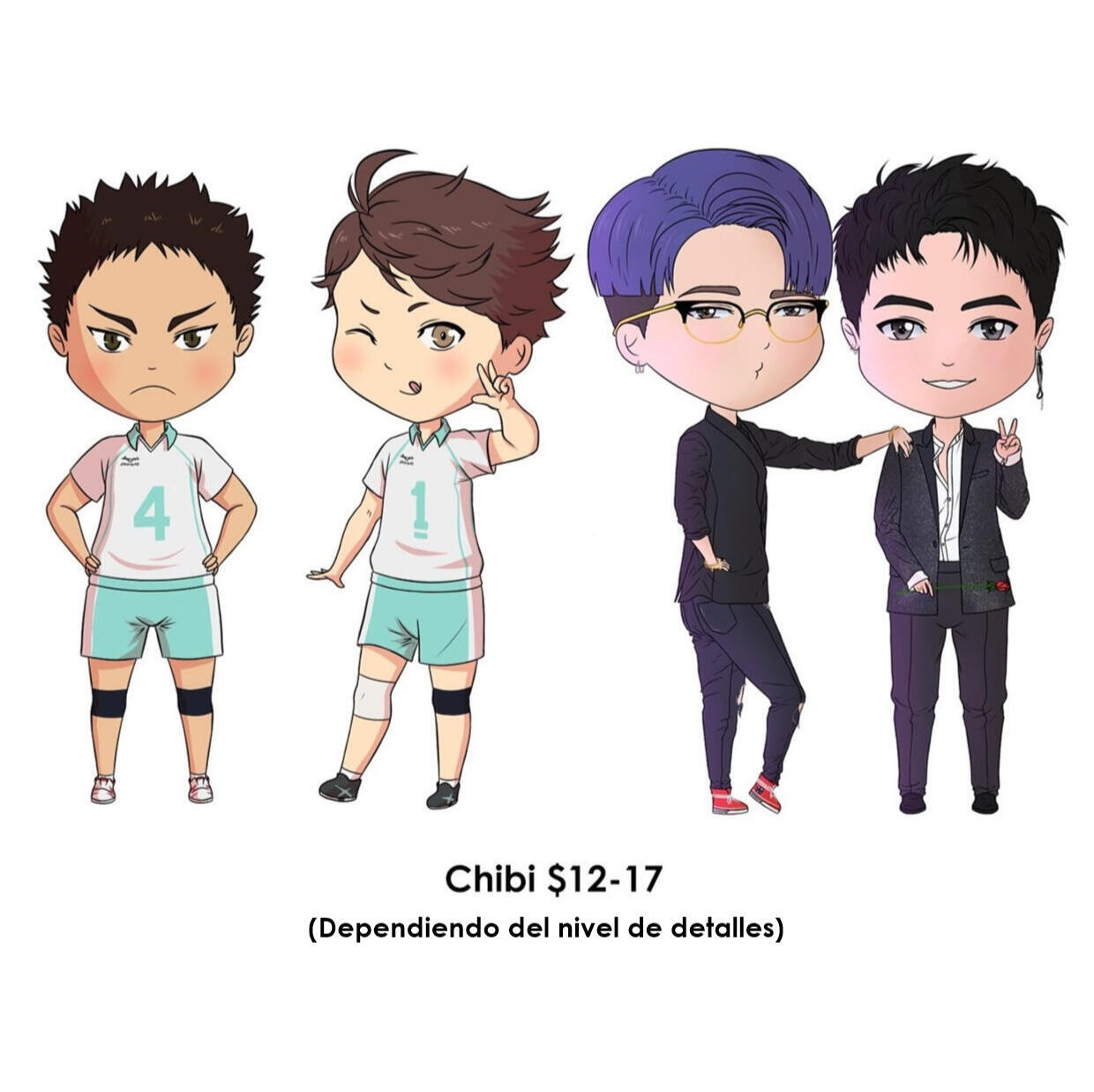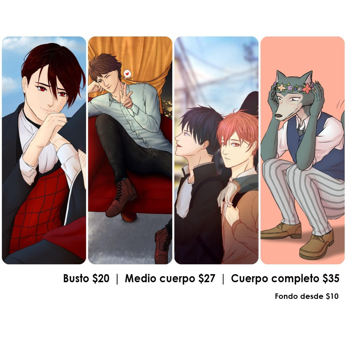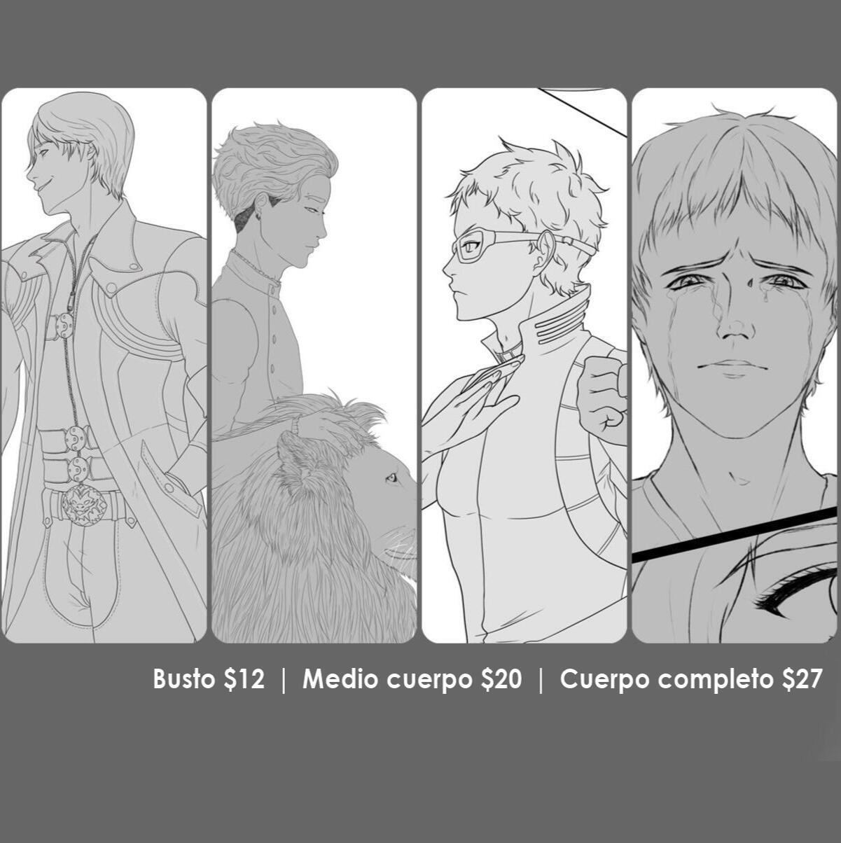 Los precios están en USD y los pagos deben hacerse via PayPal. Si es de Chile contácteme para conocer los precios en CLP, además los pagos se realizarán por CuentaRut.Puedo rechazar su pedido si no me siento a gusto con el tema. Si no sabe si aceptaría tu idea, por favor elabore su pedido de forma privada a través de redes sociales o email.Las comisiones pueden tardar desde 2 días a 3 semanas.Puedo cobrar más dependiendo de la complejidad del pedido.Cuando haga su pedido por favor envíe tantas referencias como quiera. Mientras más, mejor!Cuando la comisión esté terminada, recibirá un archivo de alta resolución a través de email.Puede postear la comisión en redes sociales personales o imprimirla para uso personal. De ninguna forma intente reclamar mi trabajo como suyo.Si me va a comisionar, por favor lea mis términos y condiciones.Para más información por favor contácteme a través de redes sociales o por correo electrónico en la sección de contacto.